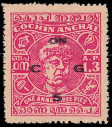 1946-47 1a3p magenta with error, ON C G S overprint double. Unused without gum as issued