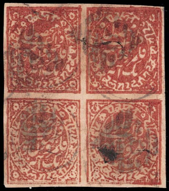 1878-79 1a red on laid paper imperf, imperf block of four.