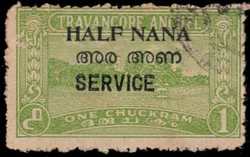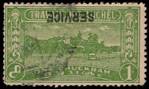 1ch yellow-green perf. 12½ with error, SERVICE overprint inverted.
