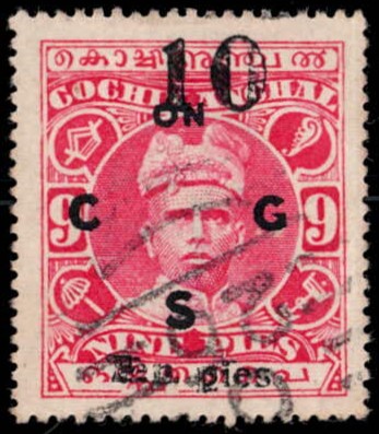 1949 9p on 4p overprinted ON C G S, horizontal pair, left stamp with "C" for "G" error.