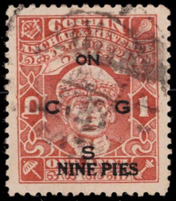 1949 1a brown-orange surcharged NINE PIES